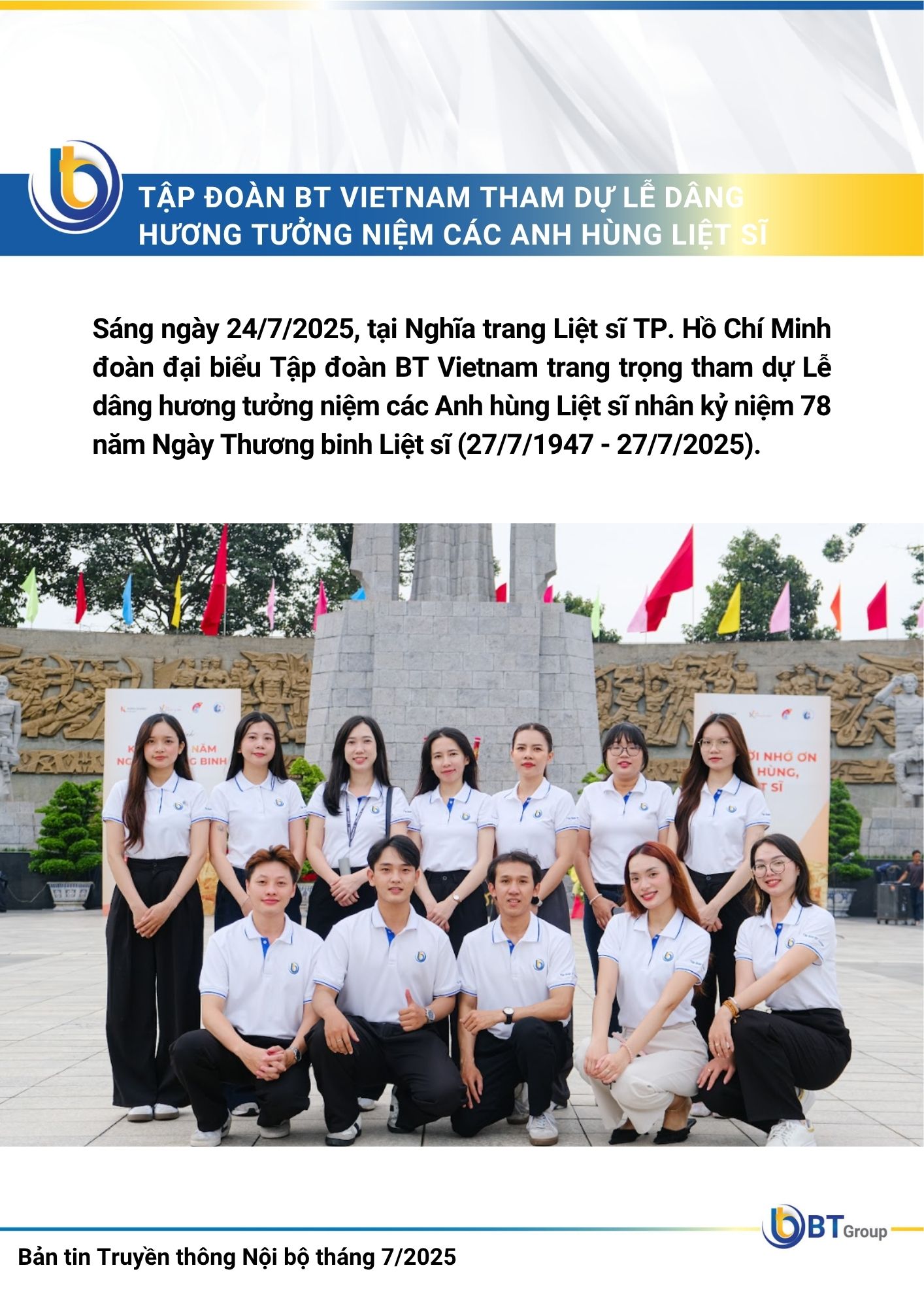 Tập đoàn BT Vietnam tham dự Lễ dâng hương tưởng niệm các anh hùng Liệt Sĩ – Tri ân và ghi nhớ cội nguồn