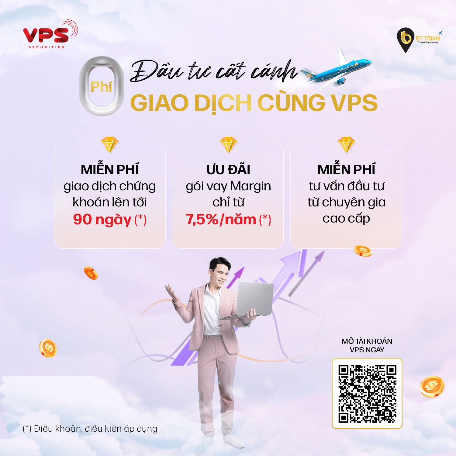 BTTravel hân hạnh hợp tác cùng Công ty Cổ phần Chứng khoán VPS (VPS) để mang đến đặc quyền trải nghiệm quản lý tài chính thịnh vượng cùng vô vàn ưu đãi hấp dẫn dành riêng cho khách hàng BTTravel khi đăng ký tài khoản tại VPS: